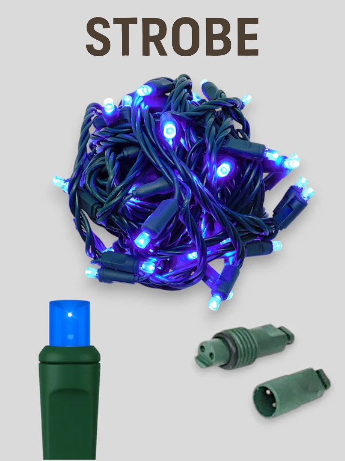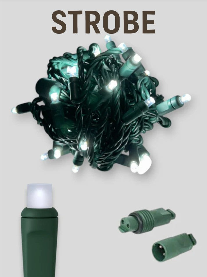 70 Count 5mm LEDs with Strobe Effect: Each string features 70 high-quality strobe bulbs on a 25-foot green wire, adding a dynamic flashing effect that enhances trees, bushes, and architectural features with vibrant, flickering light.